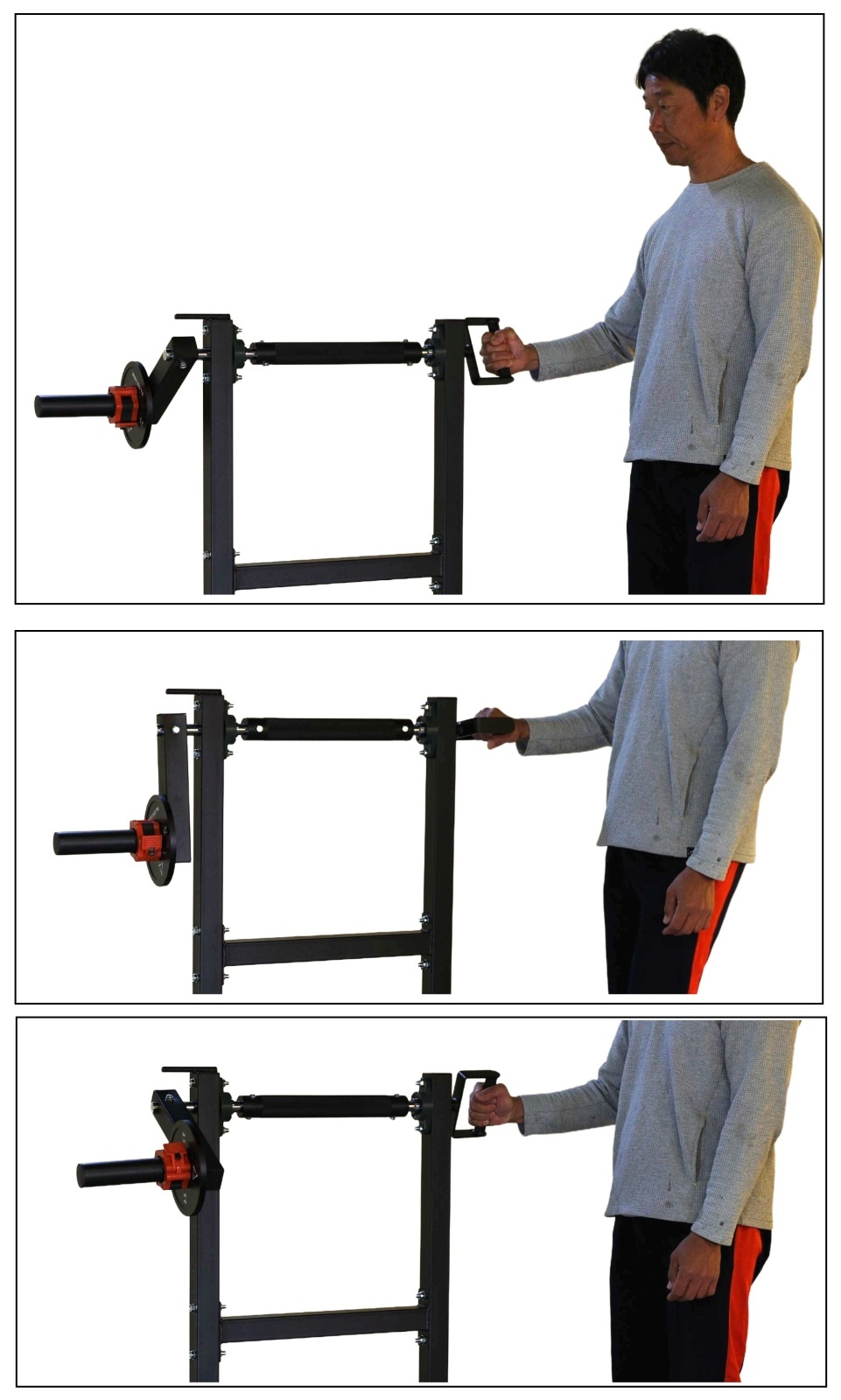 ハンドルを使ってリストローテーション、グリップ部を握ってリストカール、リバースリストカールができます。